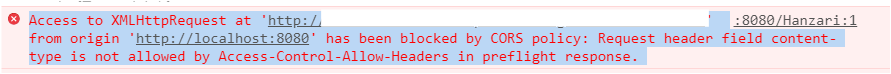 위와 같은 세팅 이후에도 다음과 같이 에러가 난다면 에러문구에 나와있는 "Content-Type"도 allowedHeaders에 추가해주어야 한다.