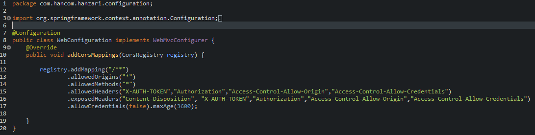 혹시 몰라서 개별 컨트롤러별로 어노테이션을 주면 일부 누락되는 경우도 발생할 것 같아 해당 어노테이션을 모두 지우고 WebConfiguration을 따로 만들어 적용하였다.
