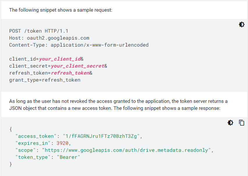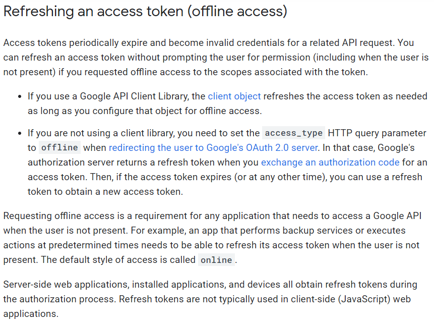 다음은 Refresh Token에 대한 예제가 나와있는 구글 공식 문서다. 링크
