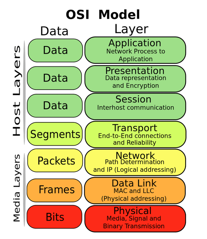 이 모델은 프로토콜을 기능별로 나눈 것이다. 각 계층은 하위 계층의 기능만을 이용하고, 상위 계층에게 기능을 제공한다. '프로토콜 스택' 혹은 '스택'은 이러한 계층들로 구성되는 프로토콜 시스템이 구현된 시스템을 가리키는데, 프로토콜 스택은 하드웨어나 소프트웨어 혹은 둘의 혼합으로 구현될 수 있다. 일반적으로 하위 계층들은 하드웨어로, 상위 계층들은 소프트웨어로 구현된다.