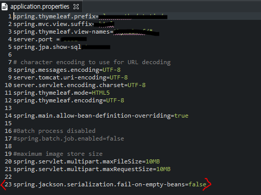 1. application.properties에 spring.jackson.serialization.fail-on-empty-beans=false 추가해주기. 하지만 근본적인 해결방법이 아닌 표면적인 방법이다. 근본적인 해결을 위해선 JSON형식으로 변환할지 말지에 대해 정해야한다.